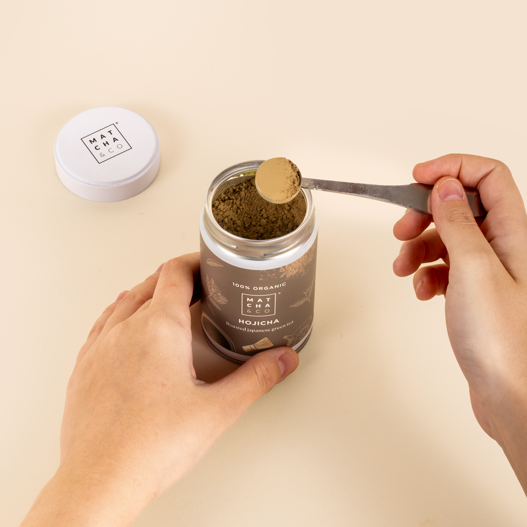 Mescola 1 grammo di Hojicha con 60 ml di acqua calda (80 °C) utilizzando un Chasen di bambù o un montalatte elettrico fino a completa dissoluzione. Aggiungi 190 ml di acqua, latte o qualsiasi bevanda vegetale.